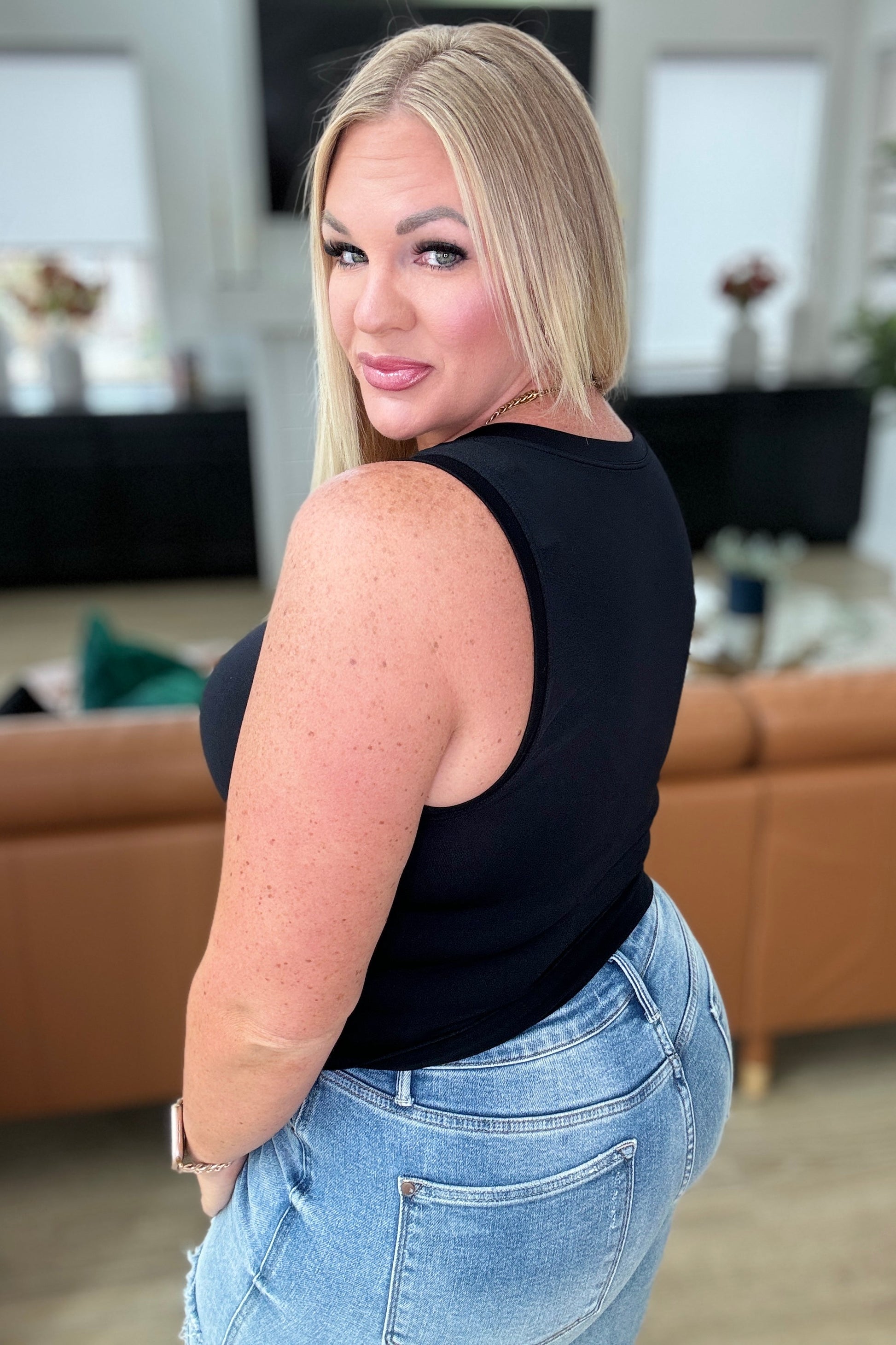 Get ready for the ultimate comfort and style with our Gimmie! Gimmie! Gimmie! Longline Tank in Black. Made with spandex, this tank will move with you and provide a flattering fit. The banded scoop neckline and sleeve cuff add a unique touch, while the longline cut offers versatility for any occasion.