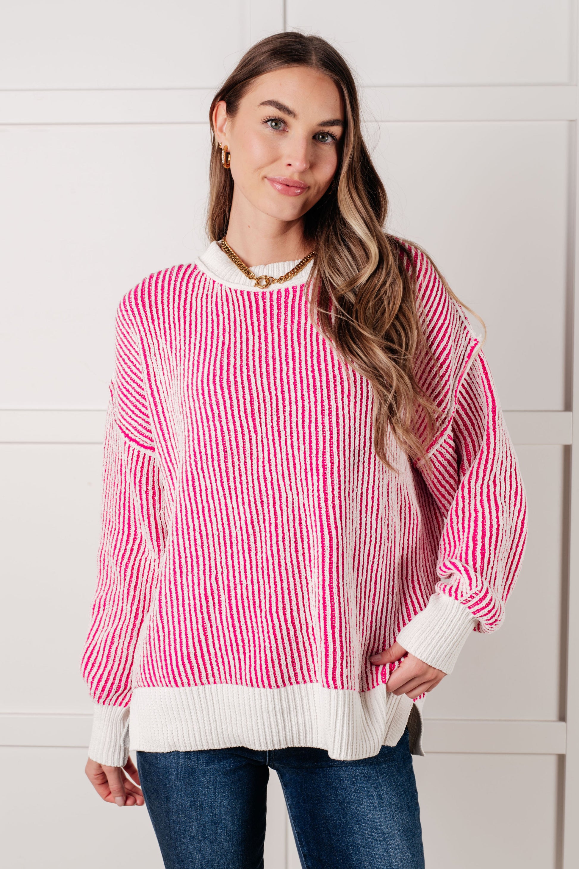 Upgrade your coziness quotient with our Least High Maintenance Contrast Trim Sweater. Featuring a textured knit and banded ribbed details on the neckline, sleeve cuffs, and hemline, this sweater is perfect for a casual yet stylish look. The drop shoulder design and side slits add a touch of chicness. (No need to sacrifice style or comfort with this beauty!)