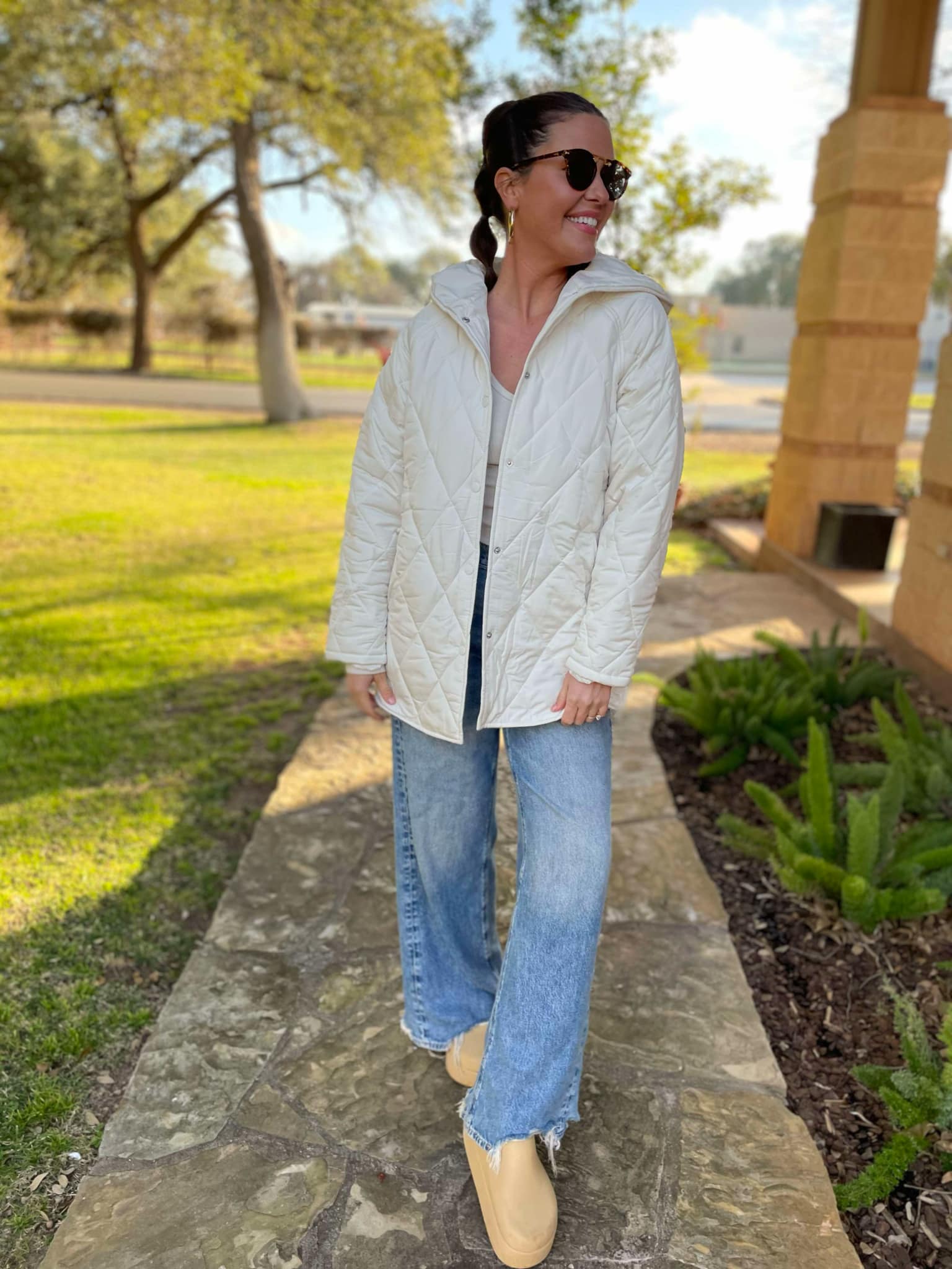 Stay cozy and comfy in this lightweight hooded puffer jacket. Featuring snap button closures, side slits and pockets!
