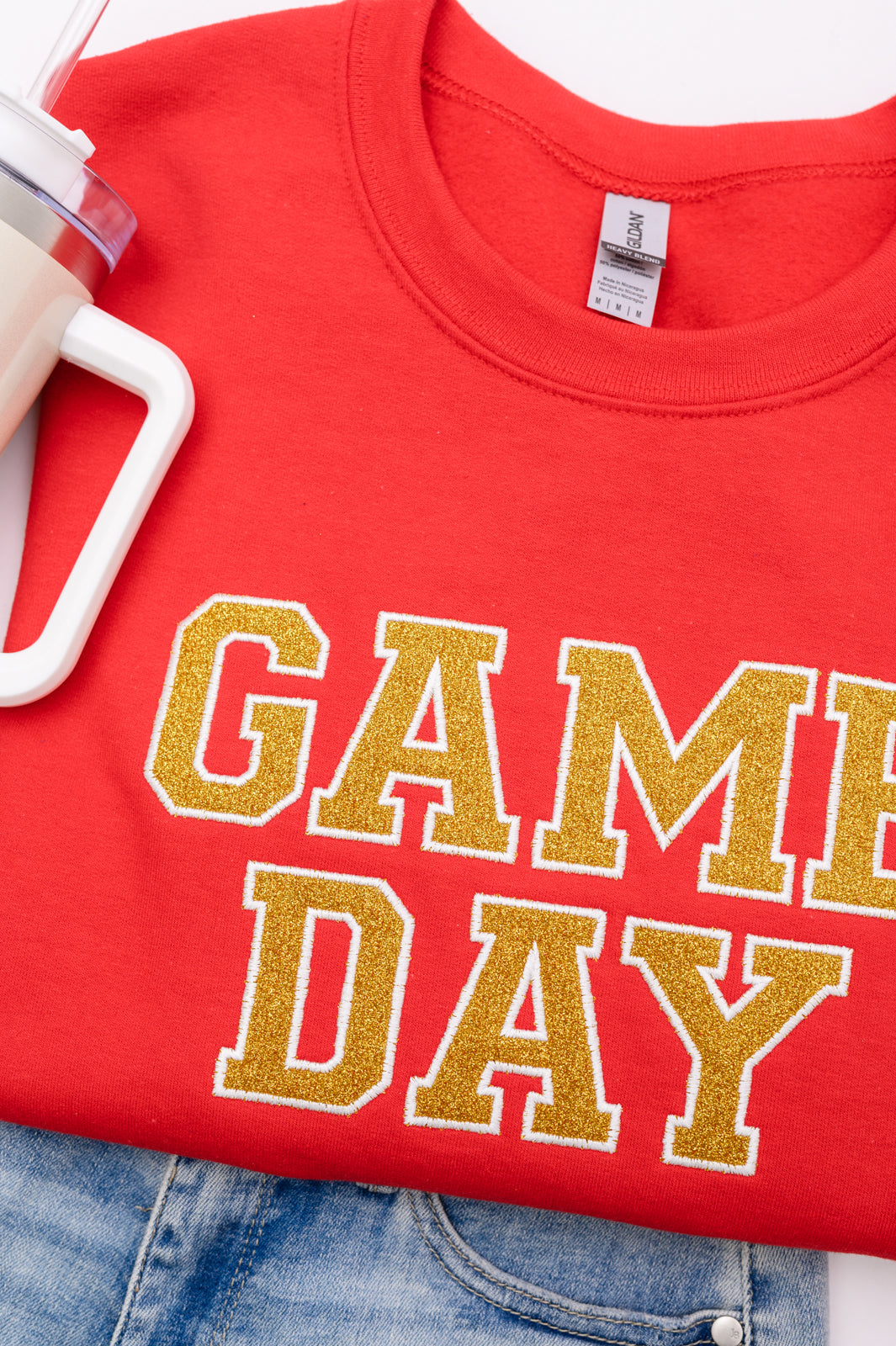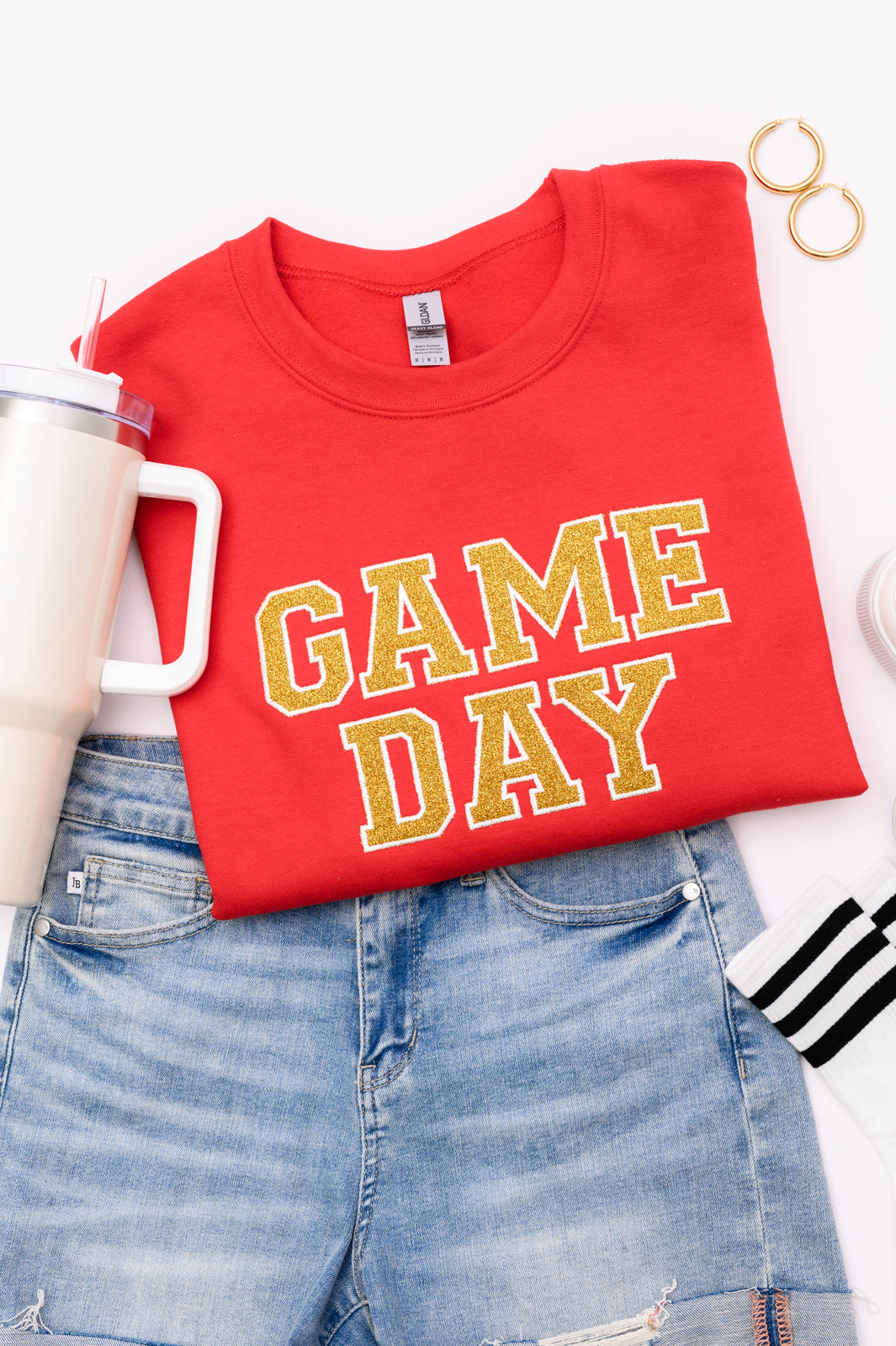 Red sweatshirt with Golden Yellow glitter and White stitching