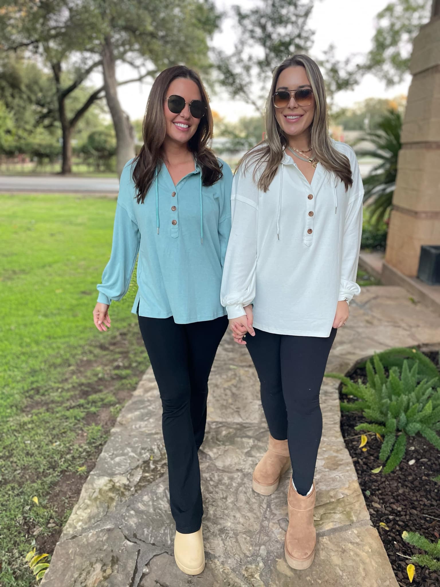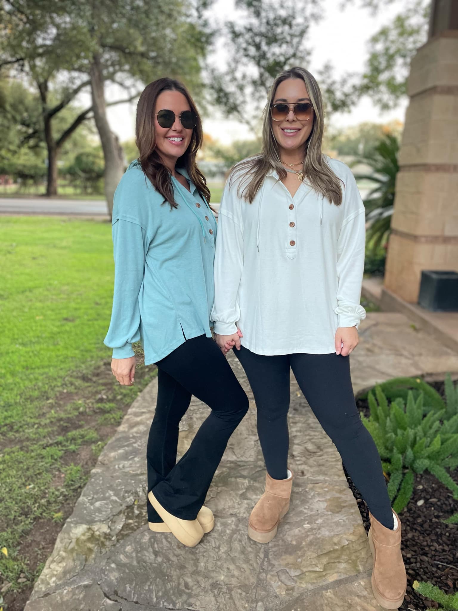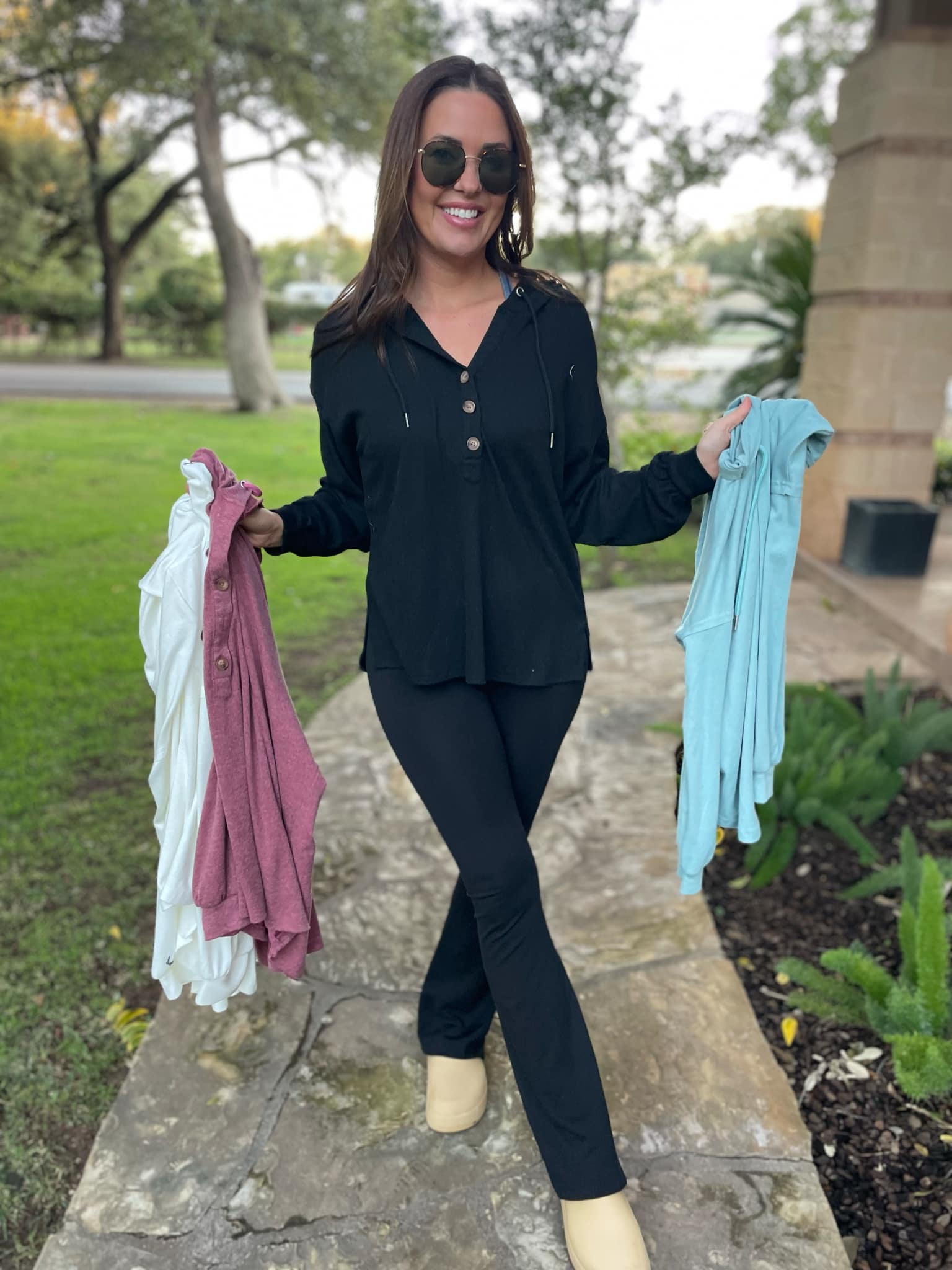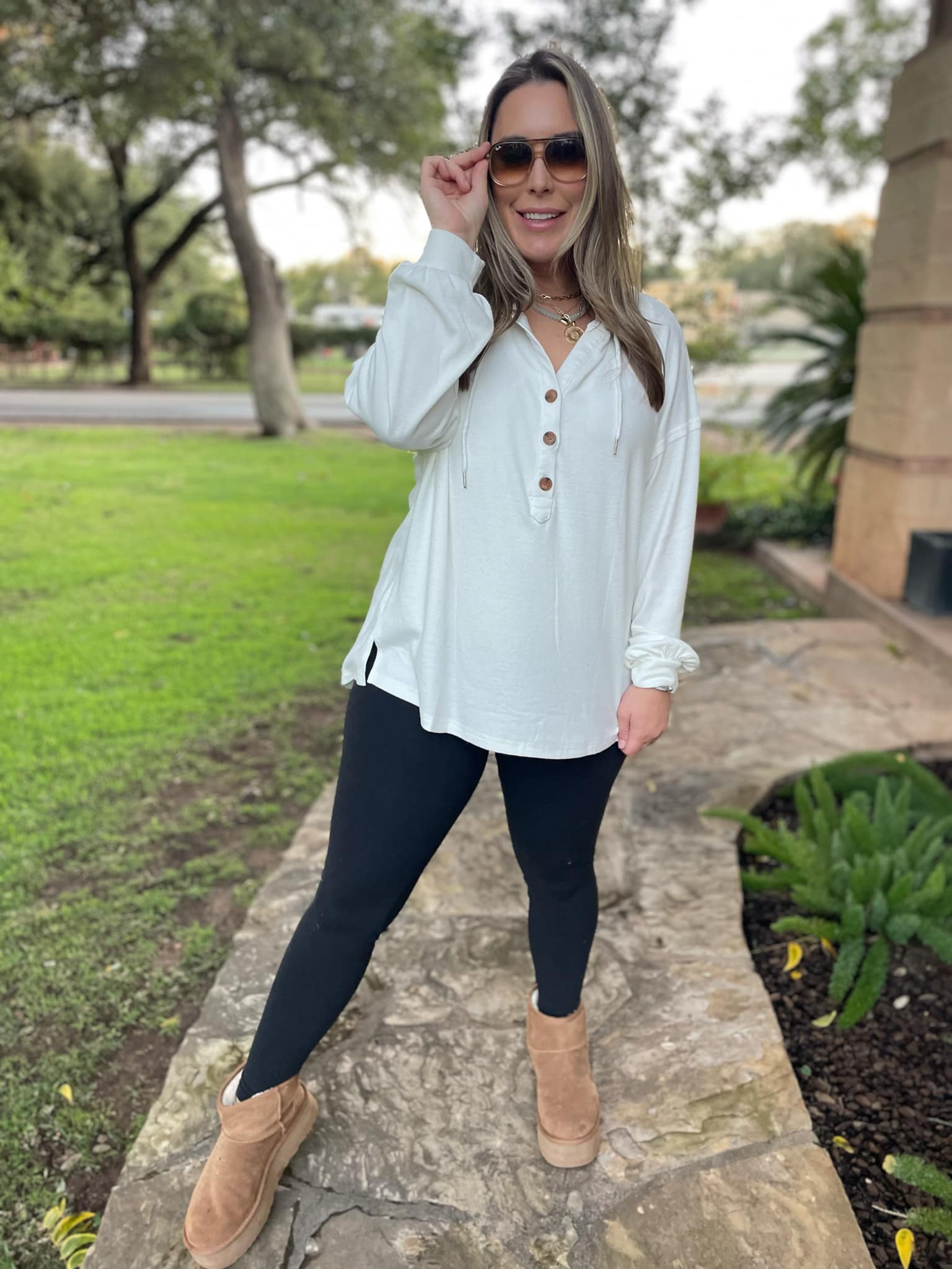 This lightweight pullover is soft and comfy! Featuring a drawstring hood, tortoise shell buttons and side slits. Available in four colors!