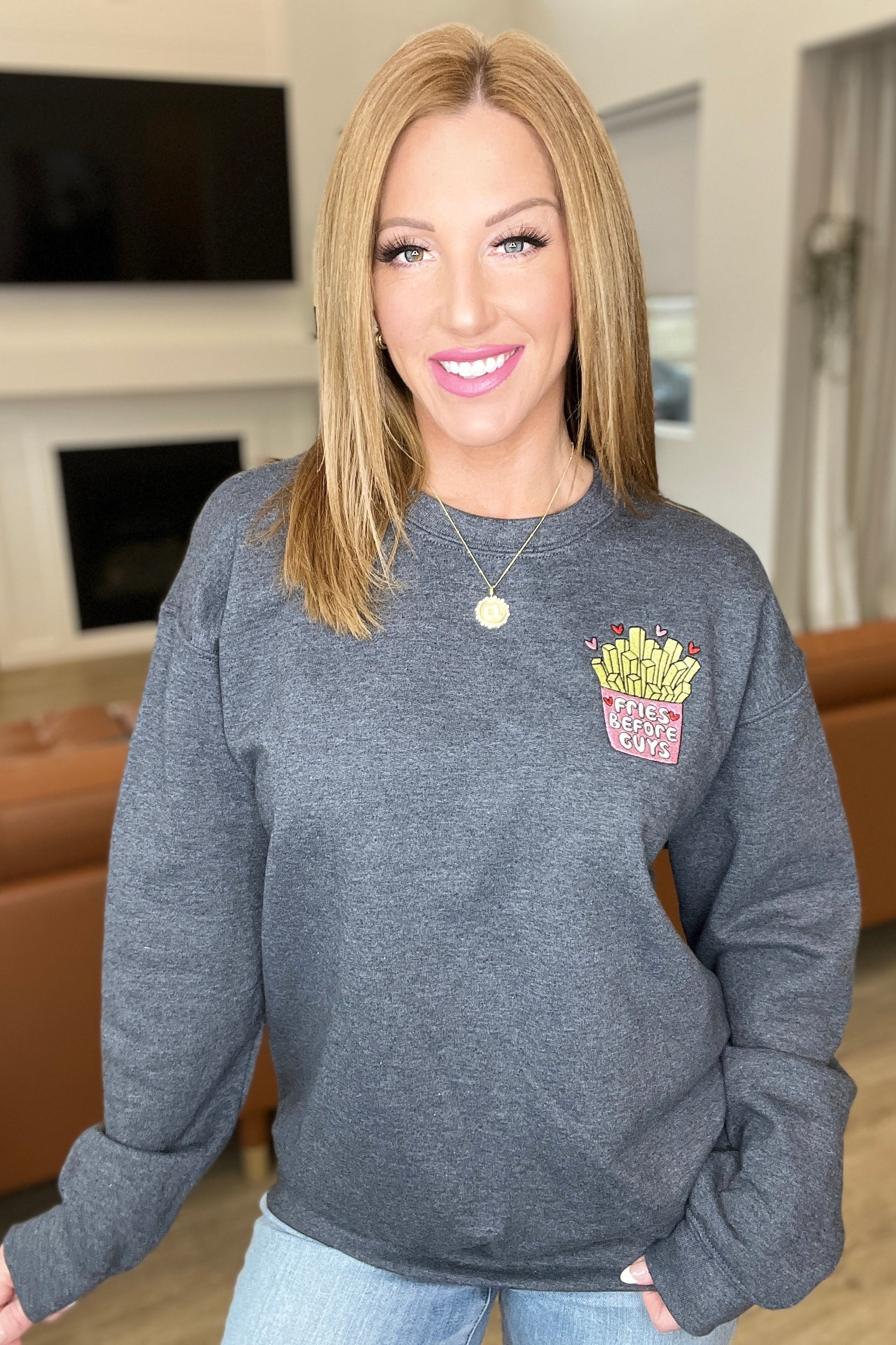 Fries Before Guys Embroidered Sweatshirt