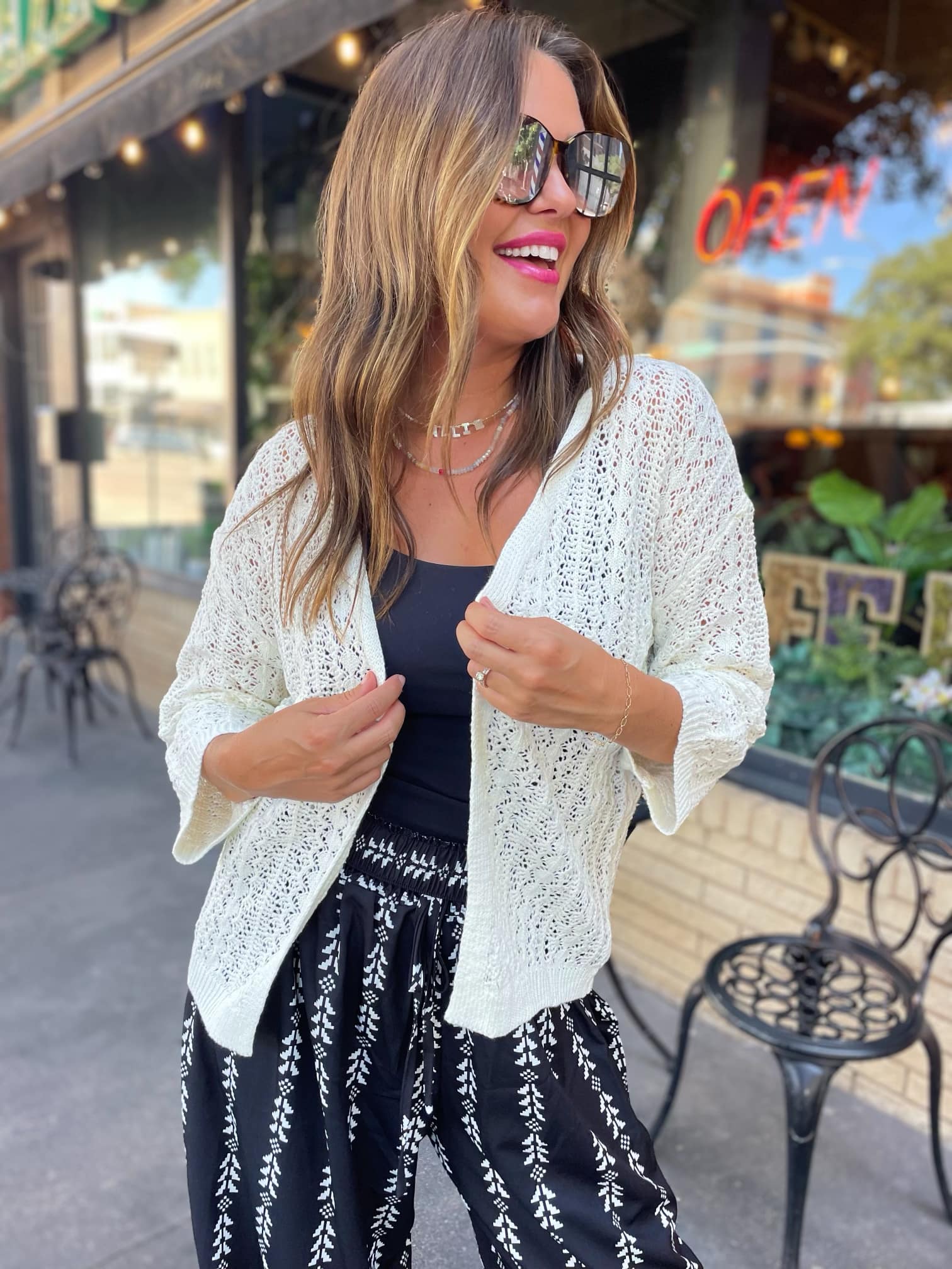 Styled with our Sunkissed Cardigan in Ivory and Black!