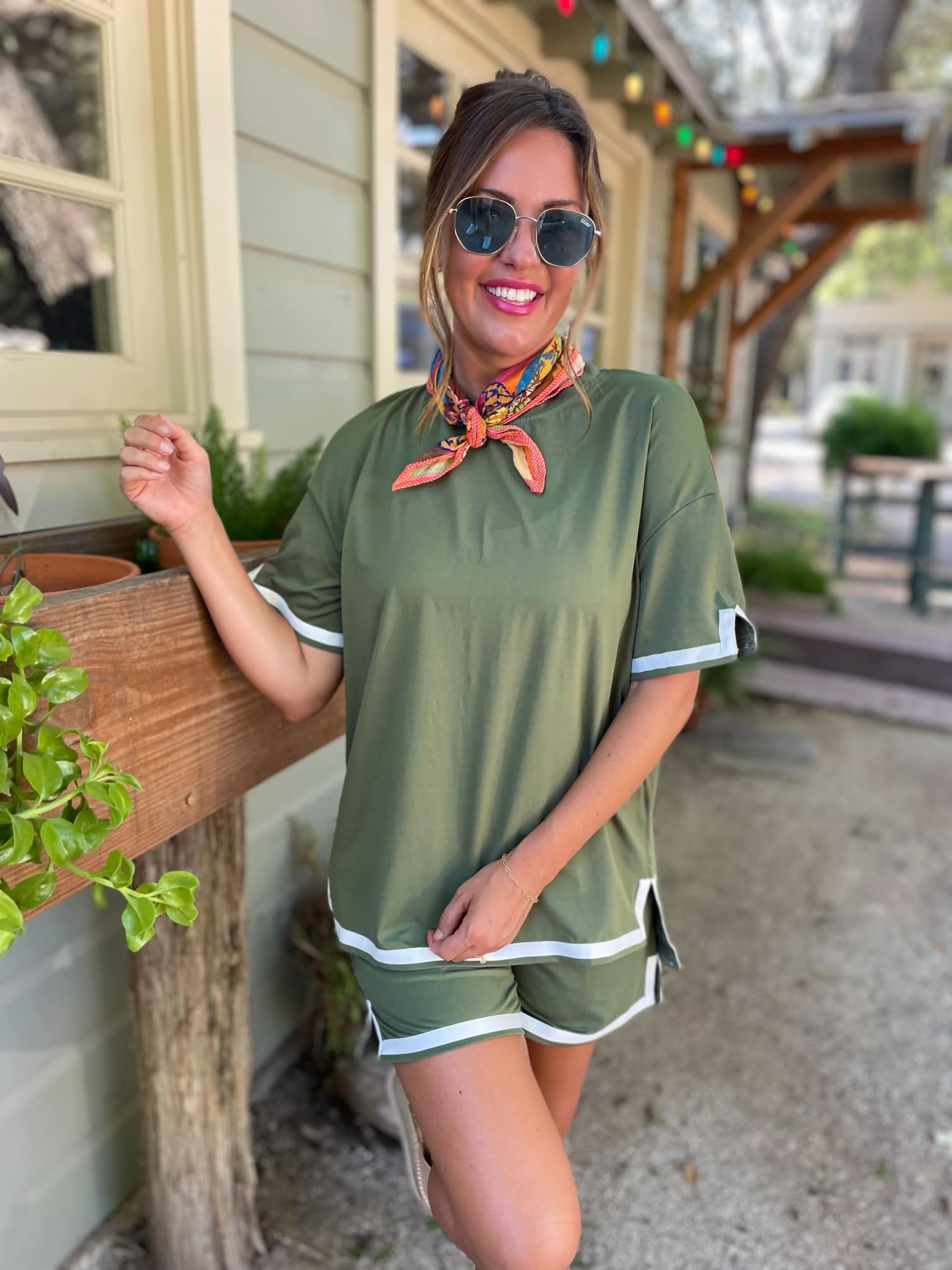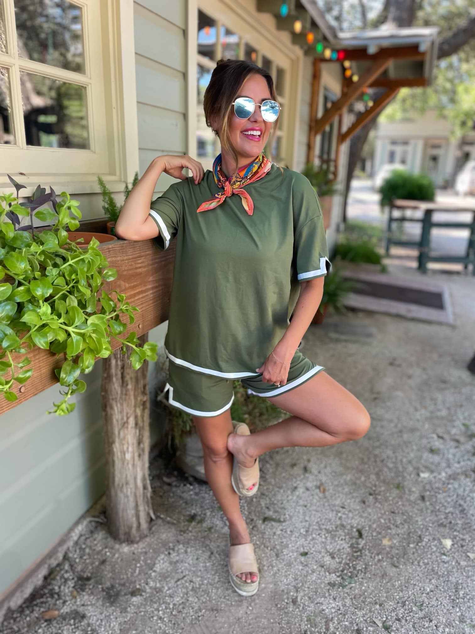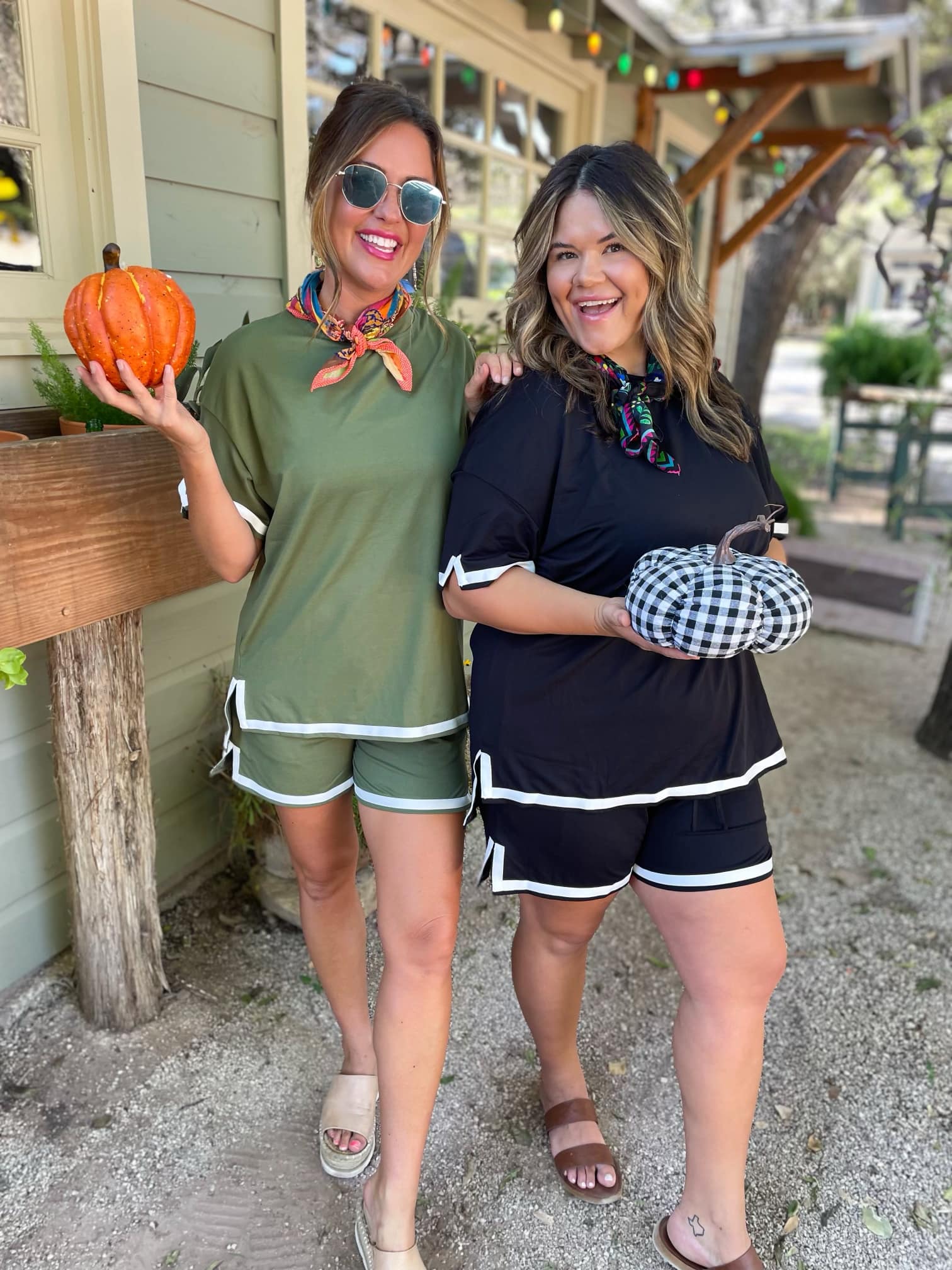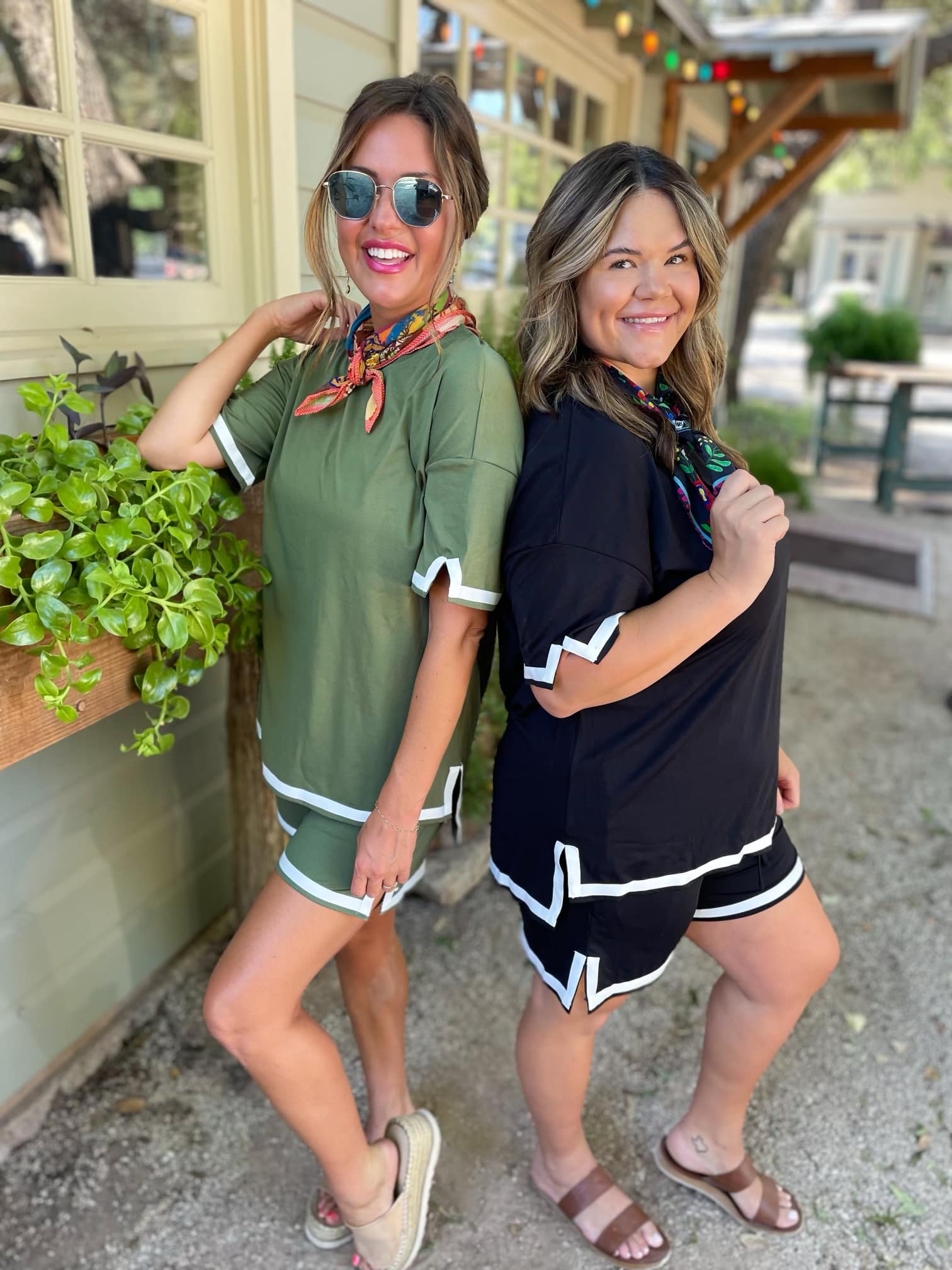 Trust us when we say this is your MUST have lounge set this season! The fabric has such a luxurious feel and the contrast detailing on the hemlines and sleeves add the perfect elevated touch. Available in ivory, olive and black!