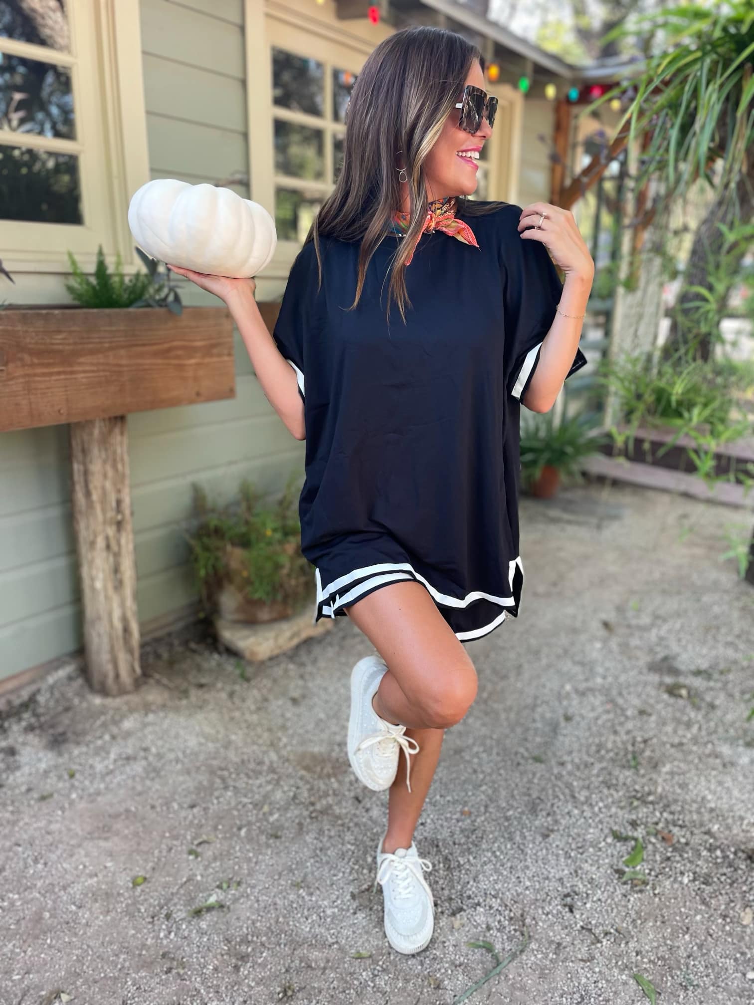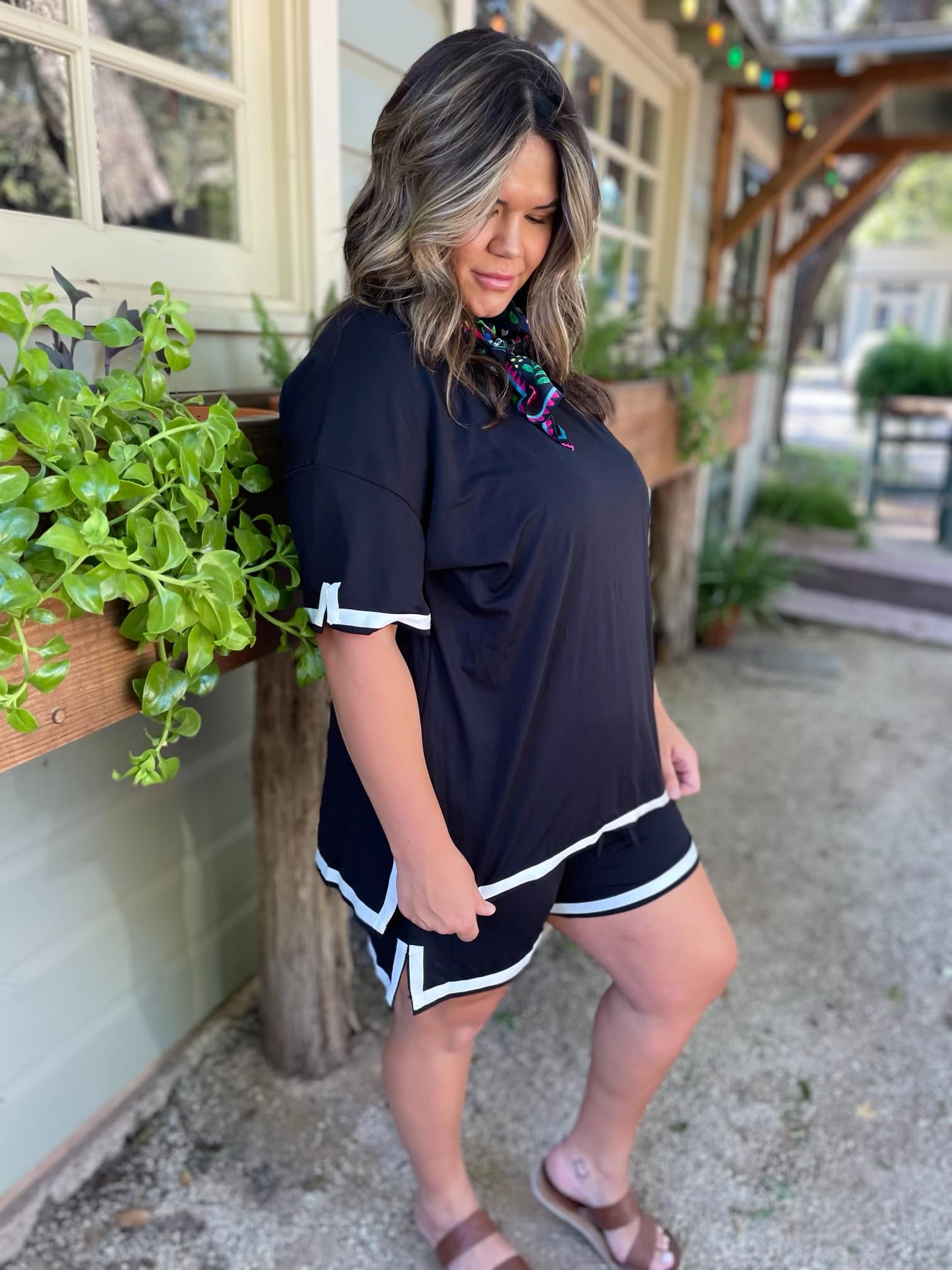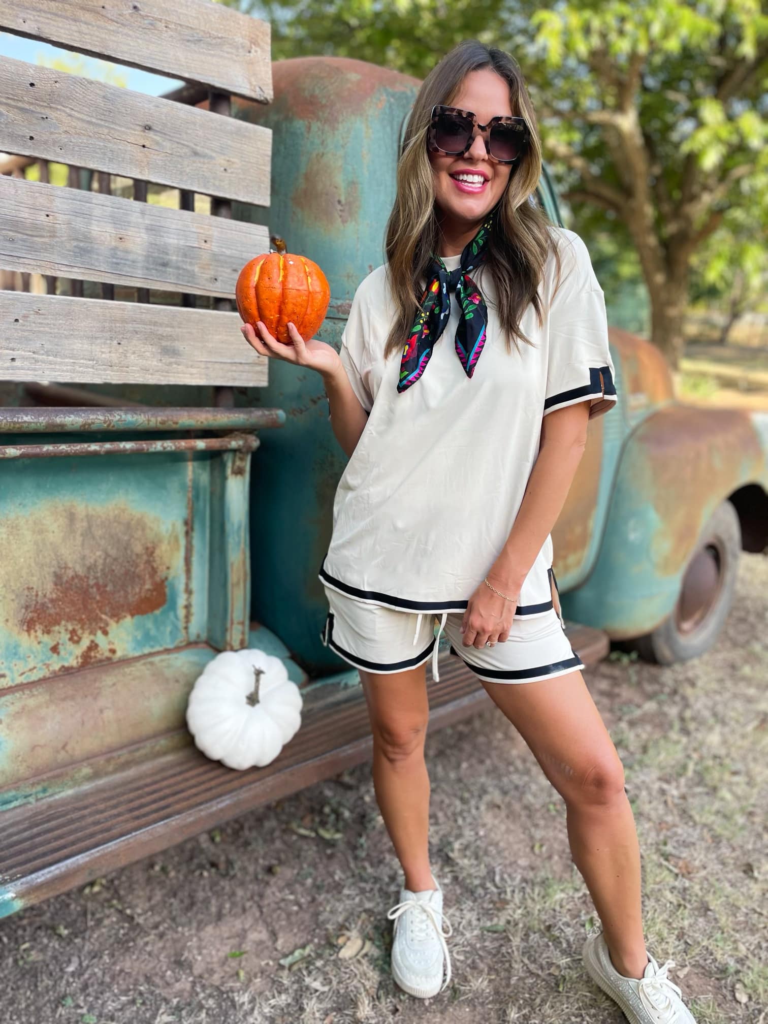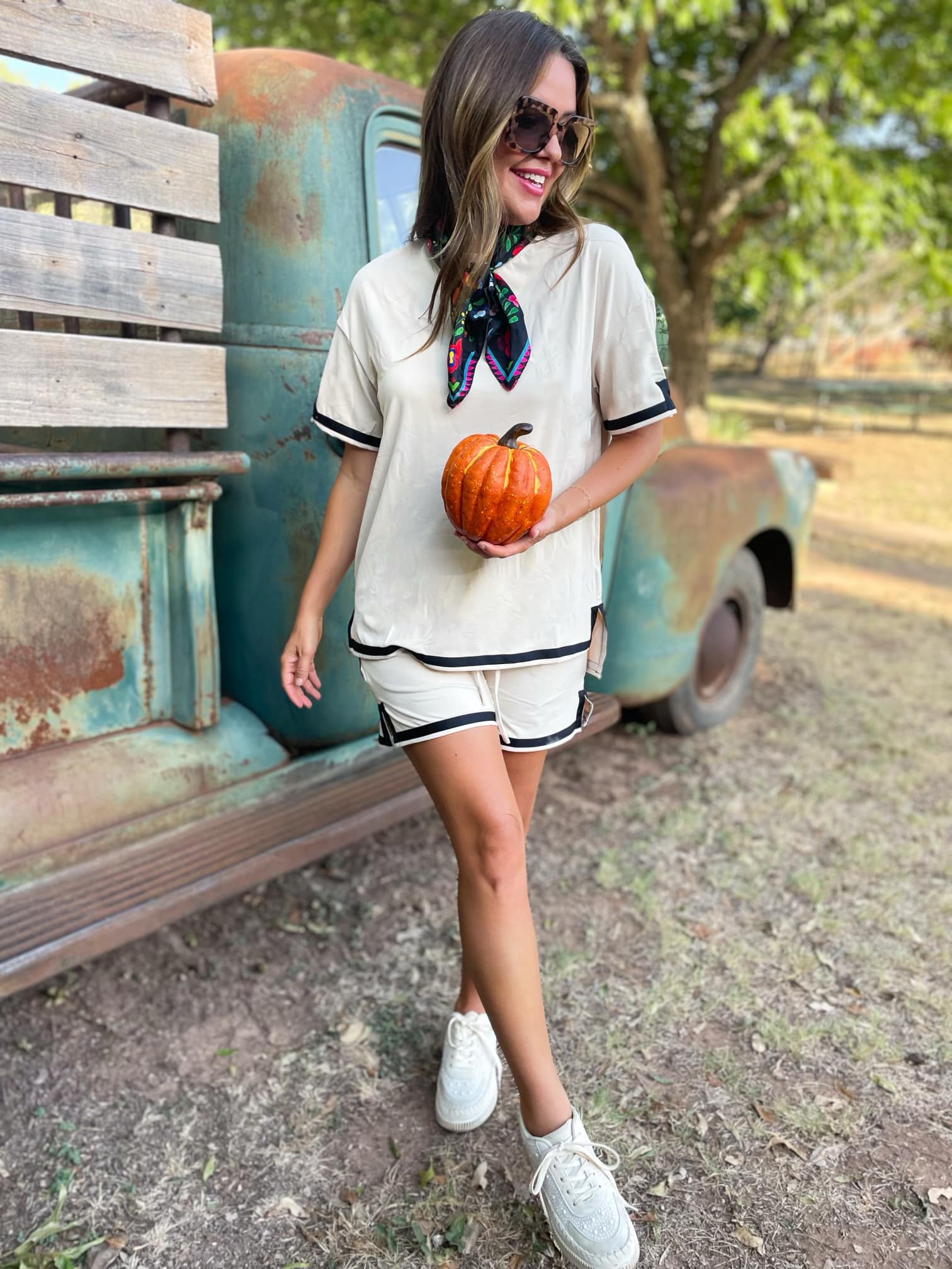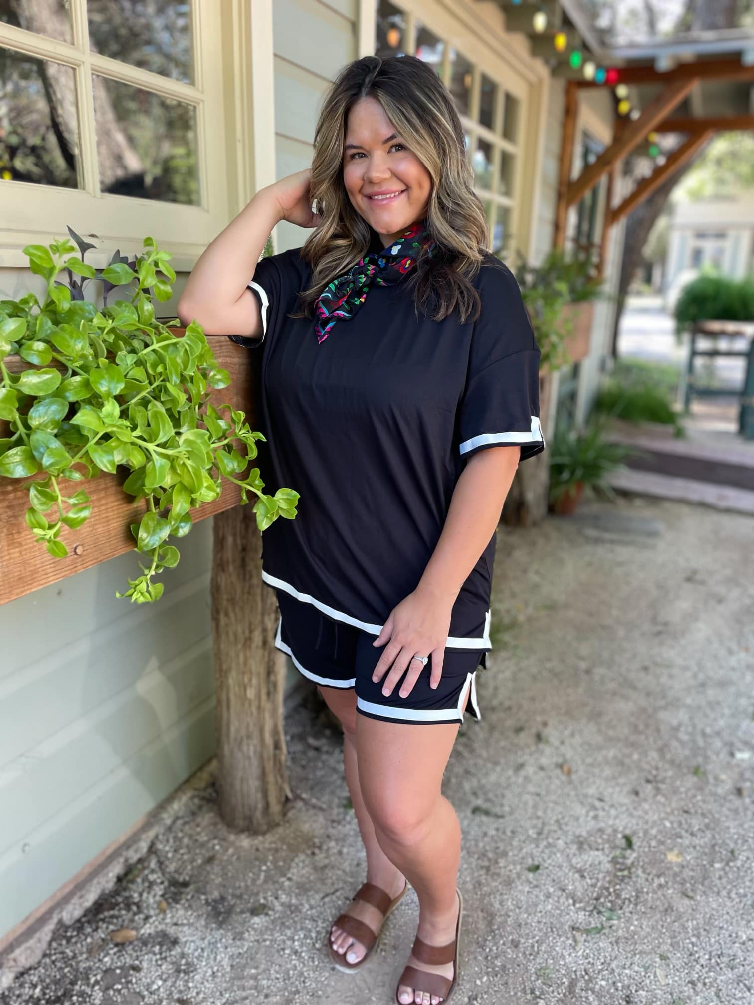 Trust us when we say this is your MUST have lounge set this season! The fabric has such a luxurious feel and the contrast detailing on the hemlines and sleeves add the perfect elevated touch. Available in ivory, olive and black!