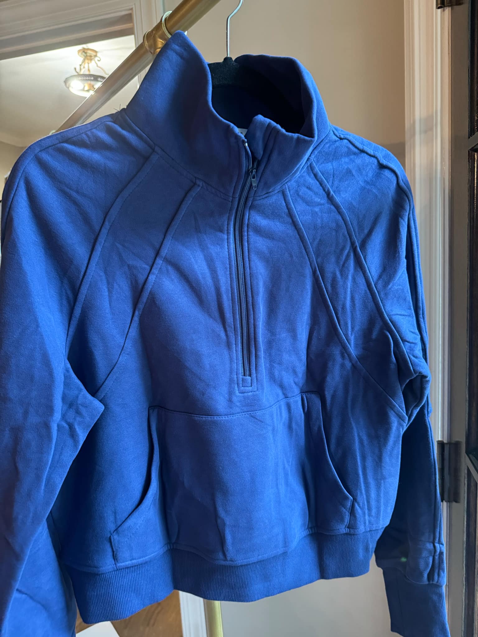 Our half zip pullovers are here in FIVE colors and you need every single one! Featuring a trendy + slightly cropped length with half zip closure, kangaroo pocket and thumbholes.
