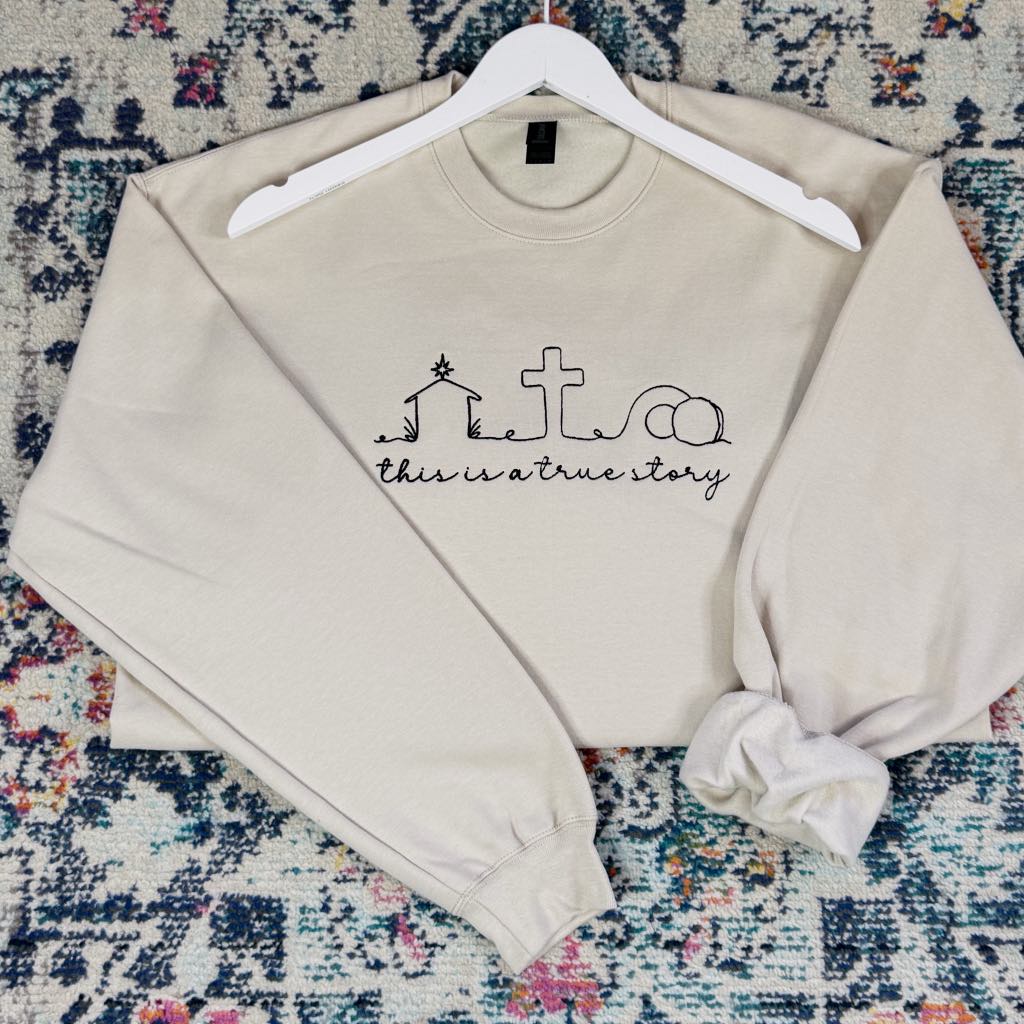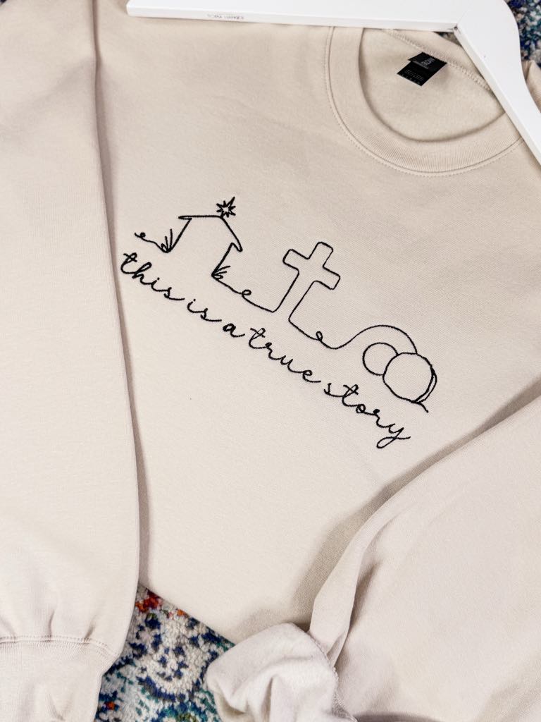 The cutest embroidered sweatshirt - perfect for Easter or any day! Black stitching on a sand Gildan crew.